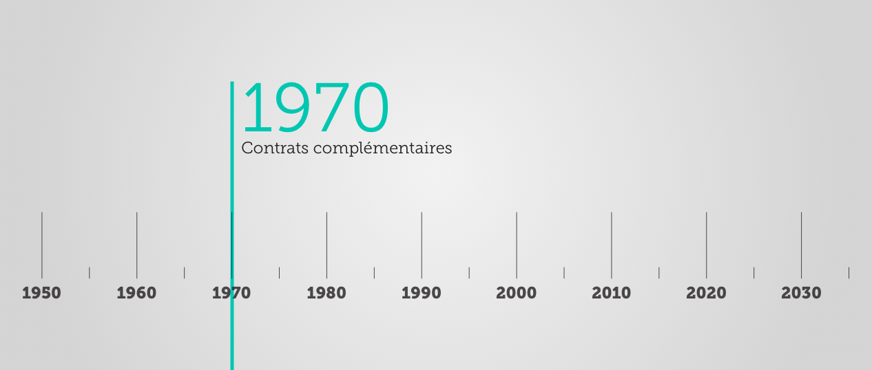 1970. La Mutuelle amorce une diversification en proposant des polices complémentaires au contrat de base.