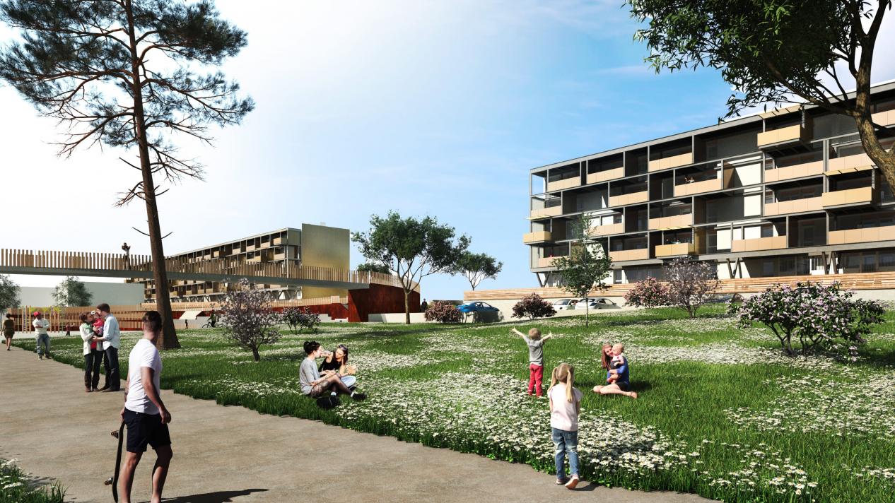 L’idée est toujours la même : l’appropriation. Récemment, nous sommes intervenus en parallèle d’un projet de construction de logements neufs, implantés sur des logements déconstruits, faisant face à une école.